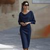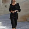 2026 Frühling Europäisches & Amerikanisches Damen Elegantes Schwingender Halsausschnitt Langarm Taillenbetontes Kleid