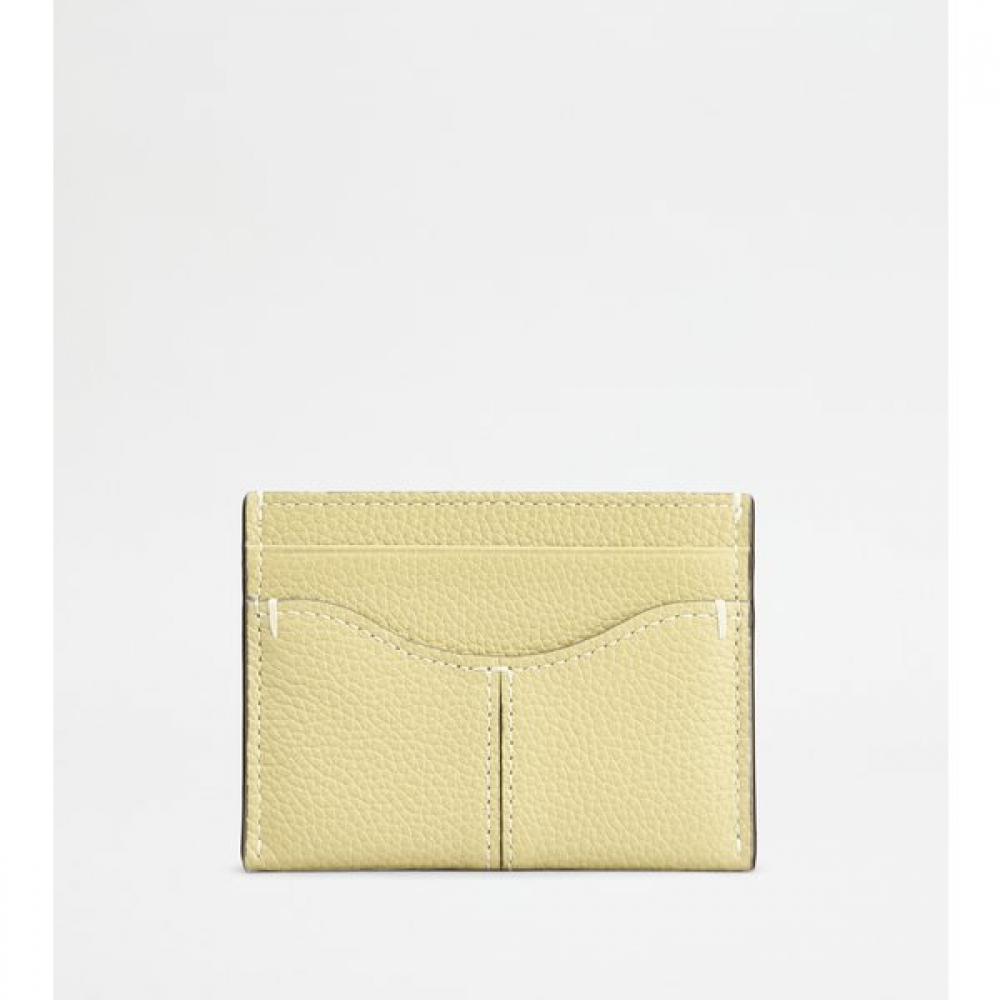 The Tod's Card Wallet XAWDBNF4100XSOG017 is a women's card wallet made from soft calfskin leather. It features a unique pocket shape inspired by the Tod's Di Bag Swing design, highlighted by central stitching and a stamped Tod's logo on the back. There are two card slots on both the front and back, enhancing practicality.