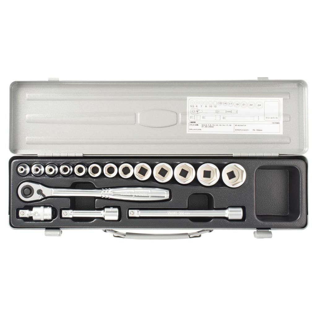 TONE 1570MS Socket Wrench Silver 17-Piece Set, 9.5mm (3/8") Drive,