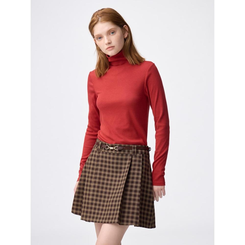 The GU by Uniqlo Warm Ribbed Turtleneck Tee is suitable as an inner layer under sweats or knits, with a recommended layered style that showcases the neckline. This product is designed with a tight fit, and it is advised to size up according to your styling preference.