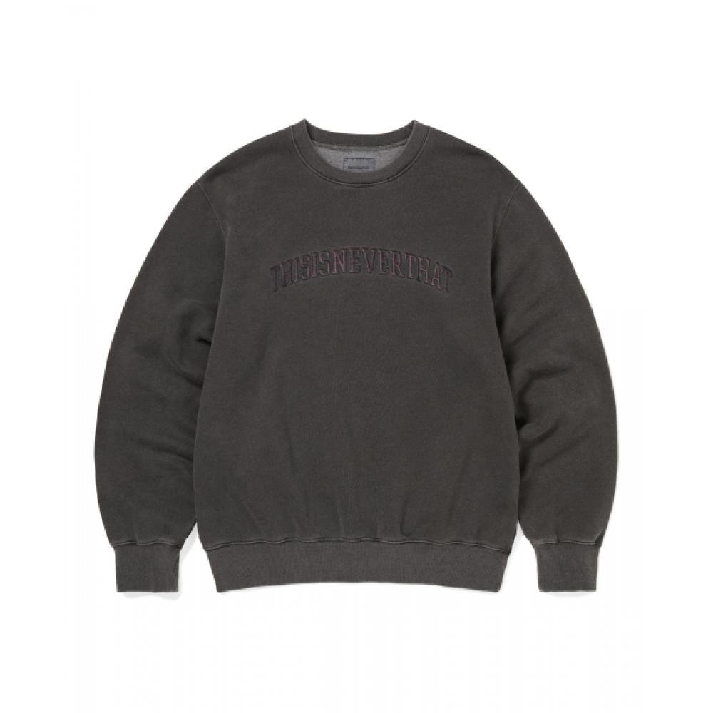 The THISISNEVERTHAT Arch-Logo Crewneck Charcoal is made from high-quality cotton blend french terry fabric. This product features a printed logo on the front and provides a comfortable wearing experience with its soft brushed back finish. Available in charcoal color, it fits well with various styles and is suitable for casual looks.