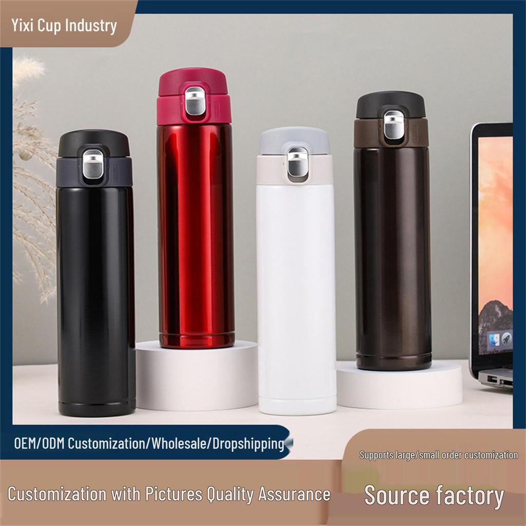 Stainless Steel Unisex Flip-Top Vacuum Thermos Cup - Fashionable & Portable for Outdoors and Business Meetings.