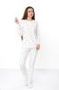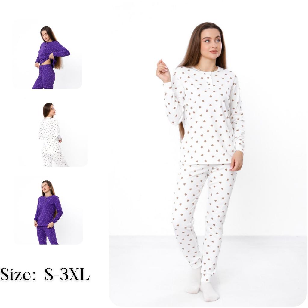 This elegant women’s interlock pajama set is an ideal choice for comfortable sleep and home relaxation. Made from 100% natural cotton, it is hypoallergenic and pleasant to the touch. The snap-button top ensures easy changing, while the pants with cuffs provide an excellent fit. This women’s interlock pajama set features a dense, durable fabric and a stylish print that maintains its appearance after many washes.