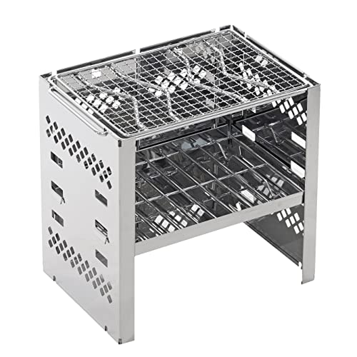 Merkmal 1: Dieses Set enthält einen Topfuntersetzer und ein Sieb, was eine vielseitige, clevere Nutzung beim Kochen, Grillen und vielem mehr ermöglicht.. Es passt kompakt in einen Behälter im B5-Format.. Die Höhe des Kohlehalters kann in drei Stufen an Ihren Brennstoff und Ihre Bedürfnisse angepasst werden.