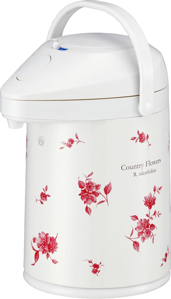 The-peacock Air Pot 2.2L - Insulated Glass Thermos (No Inner Stopper) - Push-Button Type - Made in Japan - Country Flower Design - MPP-22 FLC