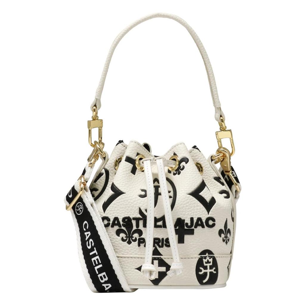 This drawstring bag features a bold print of the Castelbajac monogram. It has a playful, adult design that is a little flashy.