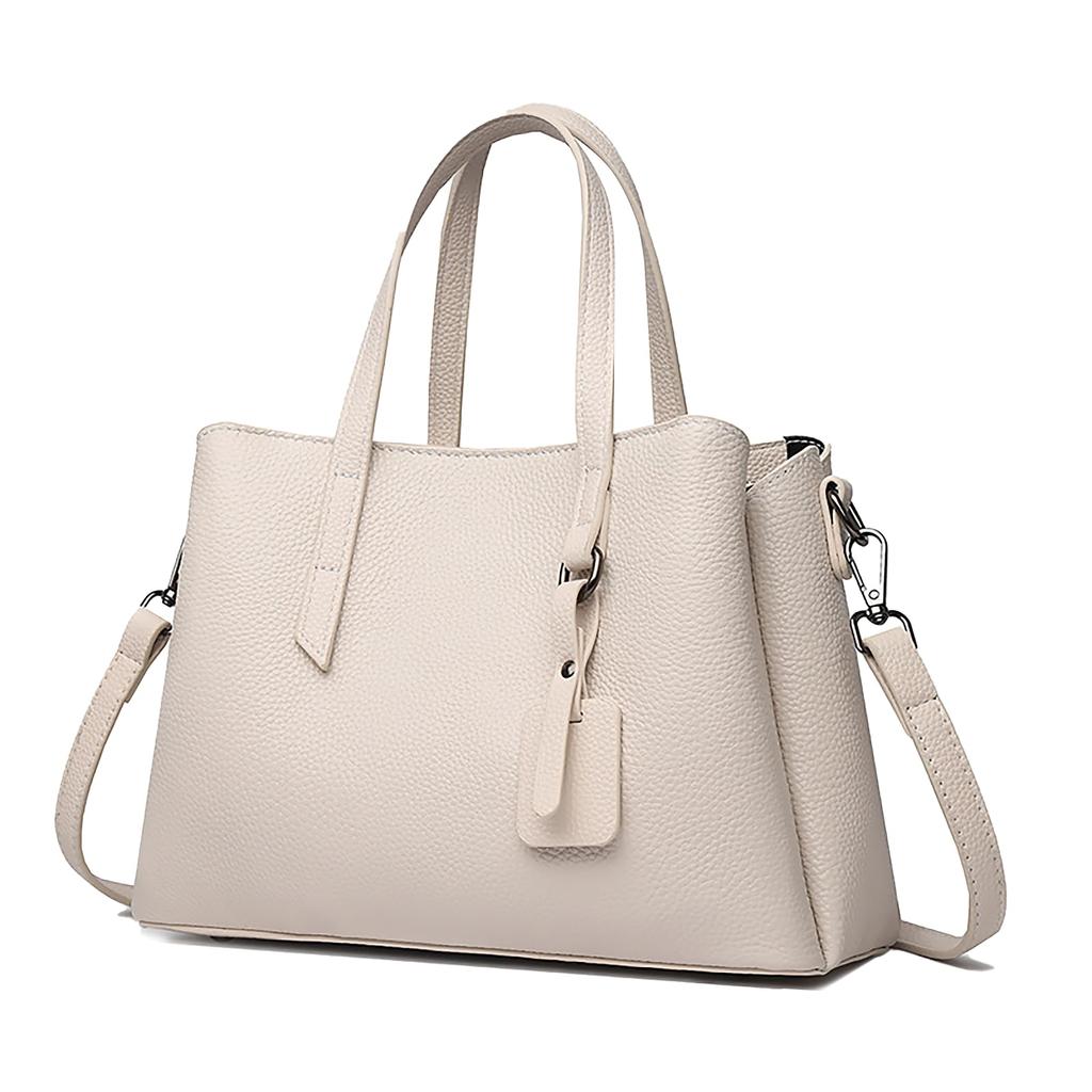 Its closure and durability are outstanding. Its detachable shoulder strap allows for flexible switching between handbag and shoulder bag styles. Despite its compact size of 27 x 12 x 19 cm, it offers ample storage space. Its lightweight weight of approximately 650g makes it comfortable to carry even for extended periods. Available in chic black and soft ivory, both are easy to coordinate with any outfit and are suitable for any season. Its high-quality, timeless design makes it perfect for commuting, everyday use, or even as a gift. This genuine leather bag exudes a striking presence despite its simplicity. It subtly elevates your everyday life, adding an elegant touch to your everyday life.
