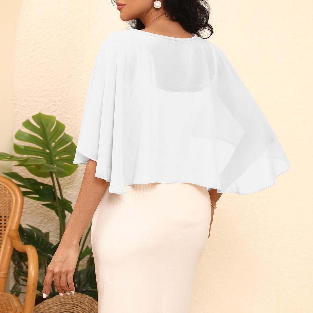 Round Neck Pearl Button Chiffon Shawl - All-Season European and American Style