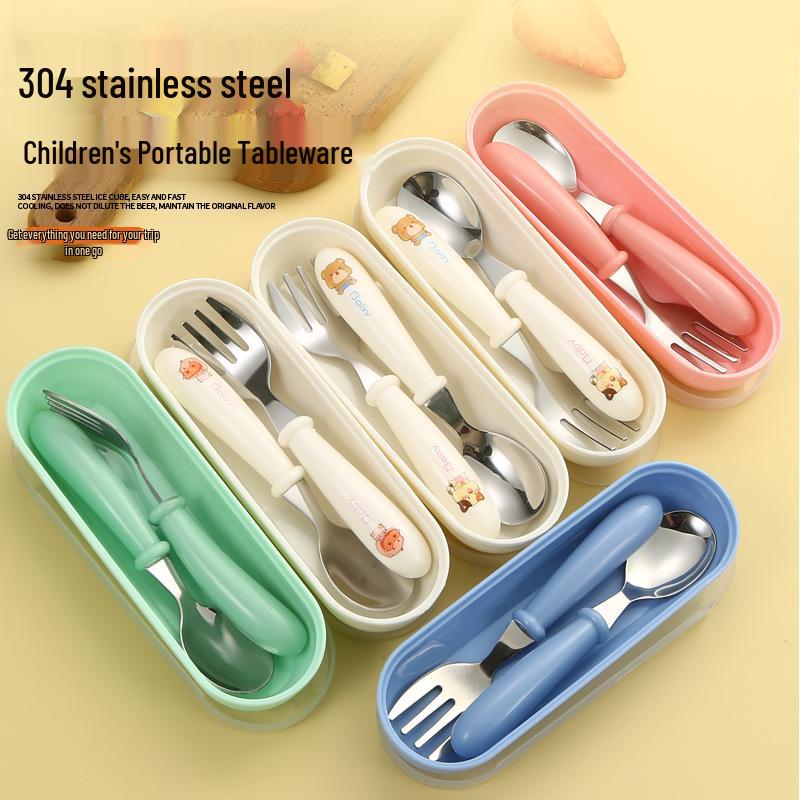 Cartoon Edelstahl Kinderbesteck Set - Tragbares Trainingsbesteck für Kleinkinder