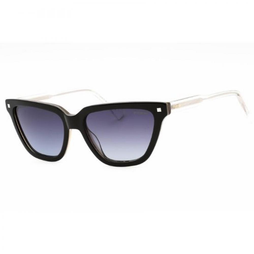 Polaroid Sunglasses, Series Number: PLD 4157/S/X, Color Code: 00WM/WJ. Featuring a cat-eye shape, lens width of 55mm, bridge width of 16mm, and arm length of 145mm. Equipped with 100% UV protection polarized lenses, the frame is made of plastic material with a full-rim design. The frame color features a blend of black and beige.