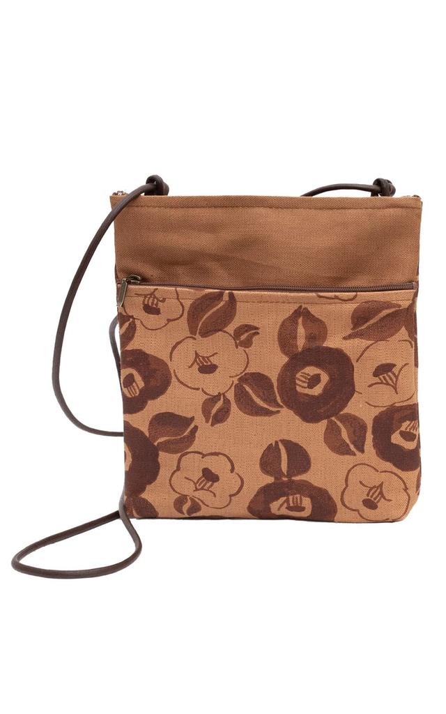 [Kaki-Gerbstofffärbung für einen traditionellen, rustikalen Look] Der Hauptteil ist aus Baumwollstoff im japanischen Tsumugi-Stil gefertigt, großzügig gefärbt mit natürlichen Kaki-Gerbstoffen von erfahrenen Handwerkern. Die Vorderseite ist mit einem Kamelienmuster versehen, das mit Kaki-Tanninen bemalt wurde, und die Textur entwickelt sich mit jeder Benutzung weiter, enthüllt bei jedem Betrachten einen neuen Look und ermöglicht es Ihnen, die Veränderungen im Laufe der Zeit zu genießen.. *[Vorsicht] Aufgrund der Eigenschaften von naturpflanzengefärbten Materialien kann die Farbe durch Schweiß, Wasser, Reibung usw. ausbleichen.