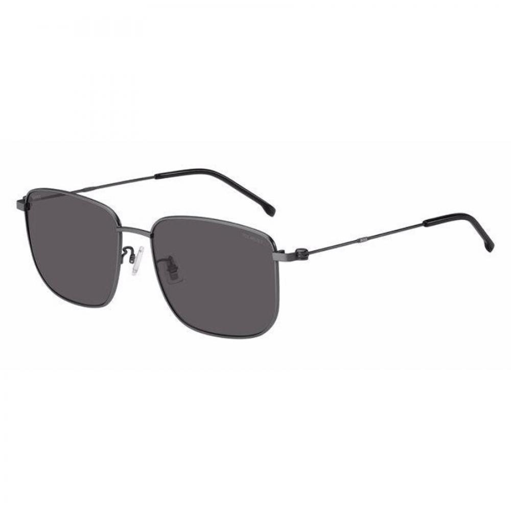 The Hugo Boss sunglasses BOSS 1619/F/S features a matte dark ruthenium frame with polarized grey lenses. This full-rim square shape exudes a modern and chic appearance. The lens width measures 58mm, the lens bridge is 17mm, and the arm length is 145mm. This model provides 100% UV protection and enhances visual clarity with its polarized lenses.