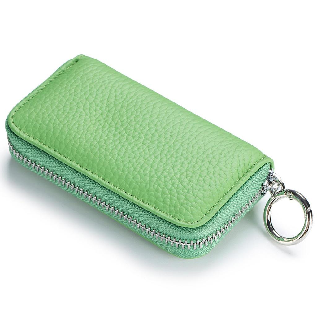RenLianyi Smart Car Key Case, Integrated Genuine Leather Card Case for Men and Women, with 6 Hooks, Key Holder, 2 Card Slots, and Carabiner, Green