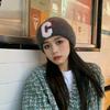 Knit Beanie Hat Angora Rabbit Hair Double Fold Letter C Rhinestone Winter Warm Soft Conical Skullcap Women