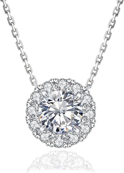 KRKC Damen Moissanit Halskette: Ein beliebtes Geschenk für Frauen. Herz-, Hufeisen-, Heiligenschein- oder Solitär-Diamant-Halskette aus 925er Sterlingsilber. Hypoallergen