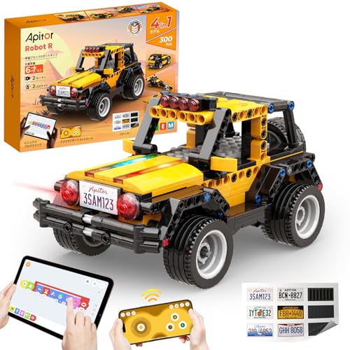 [Einsteiger-Programmierspielzeug] Roboter R enthält über 300 Blöcke und Fahrzeugaufkleber, ein Steuerungsmodul (mit zwei Hochgeschwindigkeitsmotoren), zwei LED-Leuchten, eine Montageanleitung und ein Sortiertablett. Mit diesen Bausteinen können Kinder vier coole Modelle bauen: ein Geländewagen, ein Raketenauto, ein Pick-up-Truck und ein RoboBug-Auto. Sie können sogar ihre eigenen einzigartigen MINT-Fahrzeuge bauen.