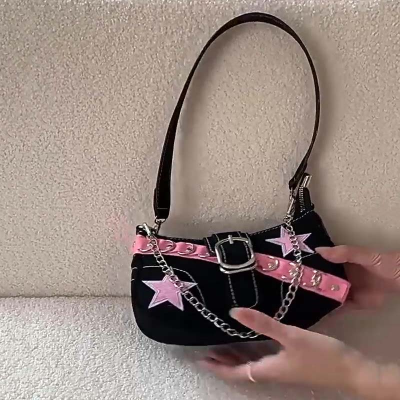 Vintage Koreanisch Lässig Niedlich Silber Y2k Stern Schultertasche Unterarm Tragetasche Damen Umhängetaschen PU Leder Damen Geldbörsen Handtaschen Neu