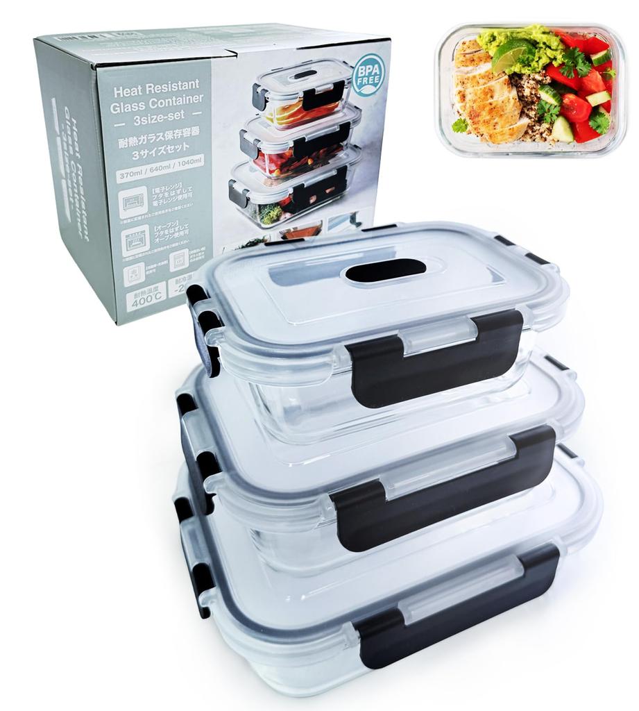 [✅Heat-Resistant Storage Containers with Tightly Sealed Lids] This set includes one of each of three sizes of heat-resistant containers, convenient for storing a variety of ingredients, from side dishes to snacks! They're made of glass, allowing you to easily see the contents. The tightly sealed lids mean you won't have to worry about leaks.