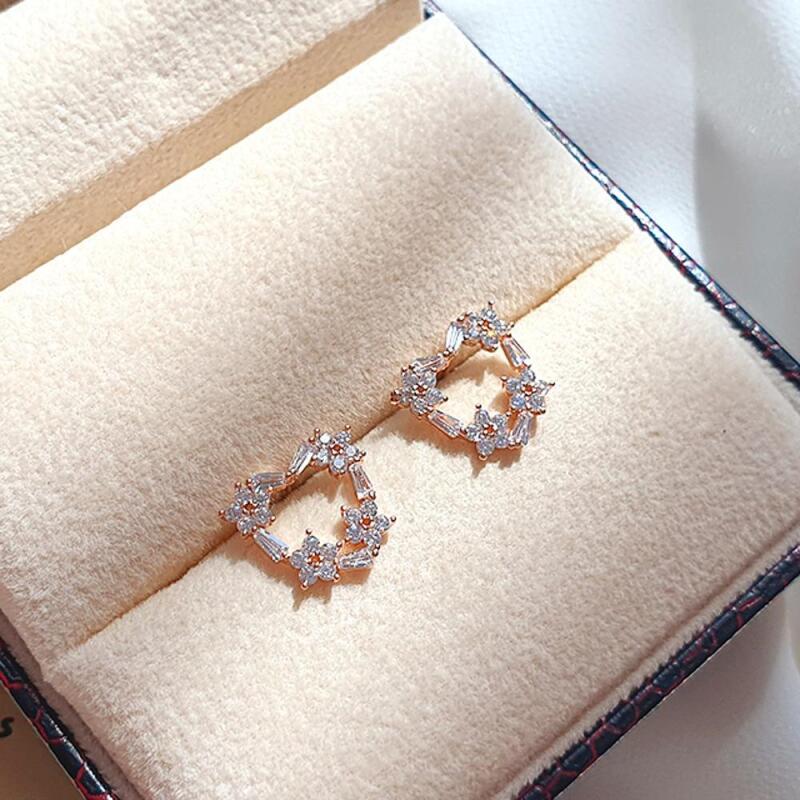 Damen Ohrringe Herz Blume Zirkonia Lässig