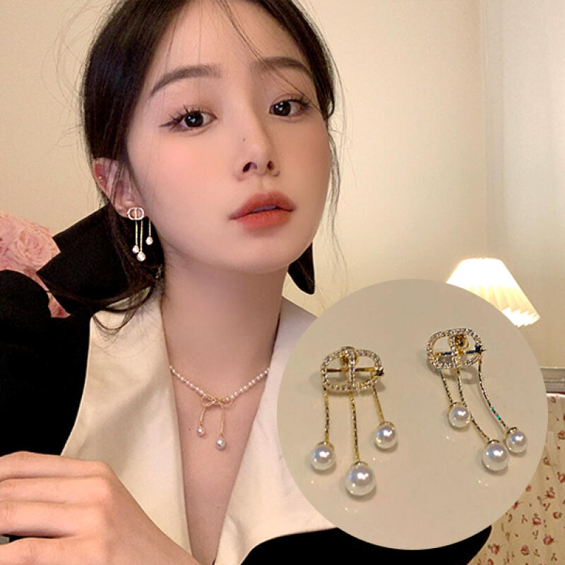 Luxuriöse goldene Perlen-Tropfen-Modeschmuck-Ohrringe ansehen