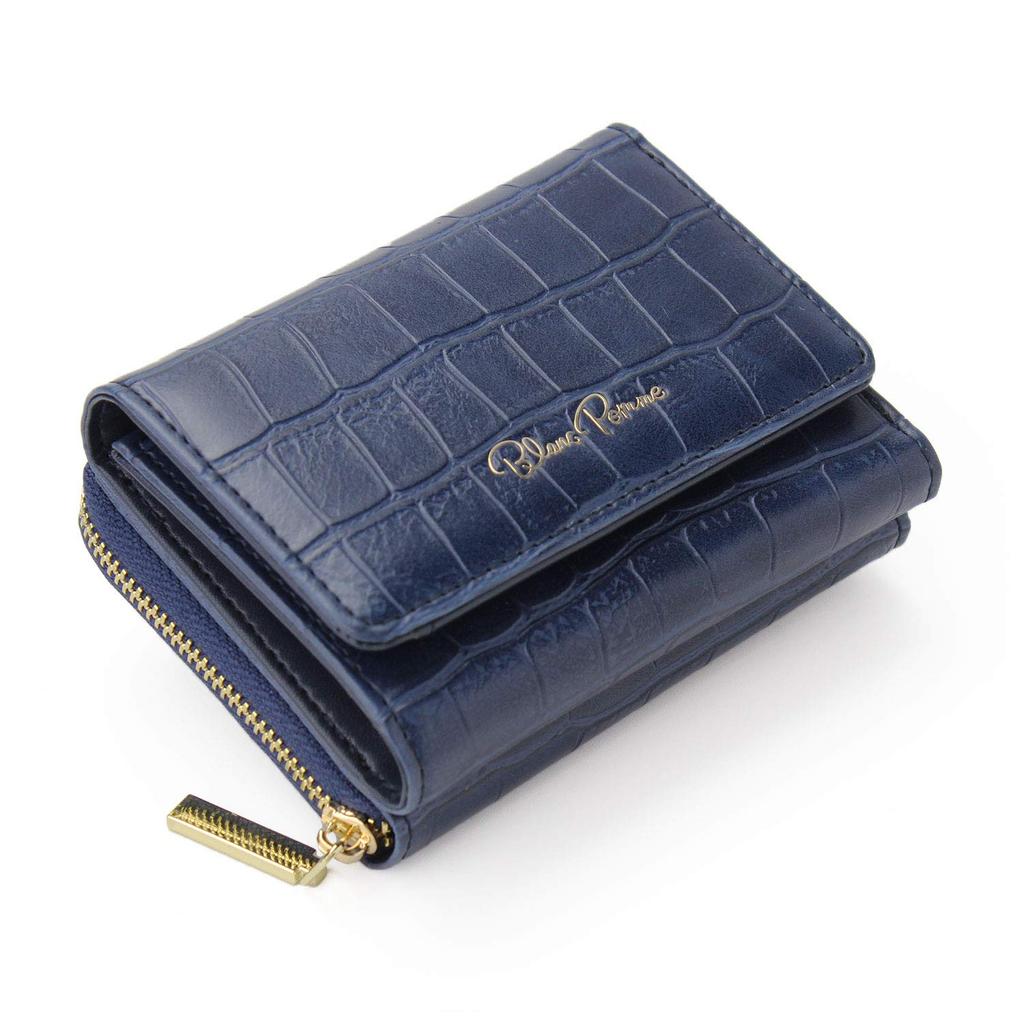Blanc Pomme Damen-Mini-Portemonnaie, dreifach faltbar, kompakt, kleines Portemonnaie mit Krokodil-Prägung und Münzfach, elegantes Nachtblau, bp-1041