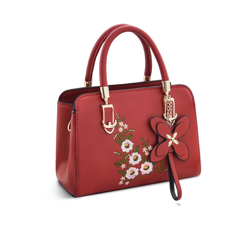 NICOLE & DORIS Women's 2-Way Shoulder Bag, PU Leather with Floral Embroidery, Waterproof, Lightweight, Can be Carried Over the Shoulder, Handbag, or