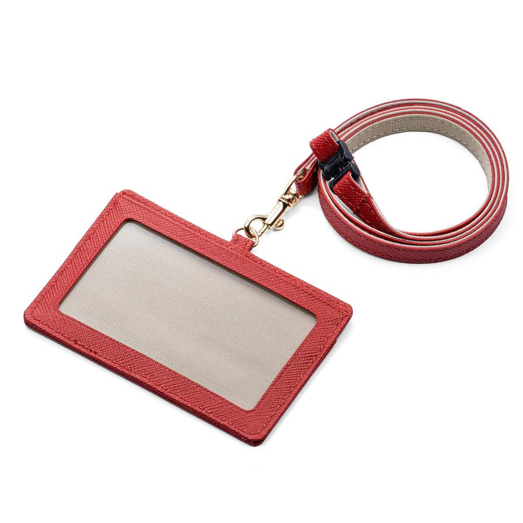 Corale Women's Genuine Leather ID Case, ID Card Holder, Horizontal Design, with Safety Feature and Neck Strap, Dark Red