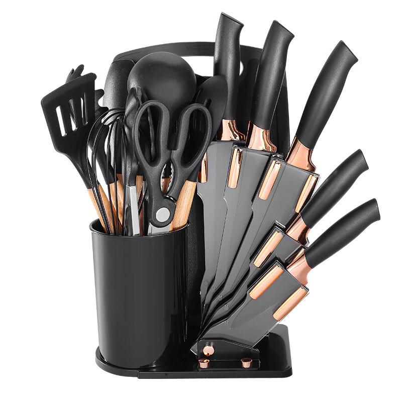 19-Piece Silicone Kitchen Utensil and Knife Set with Acrylic Stand