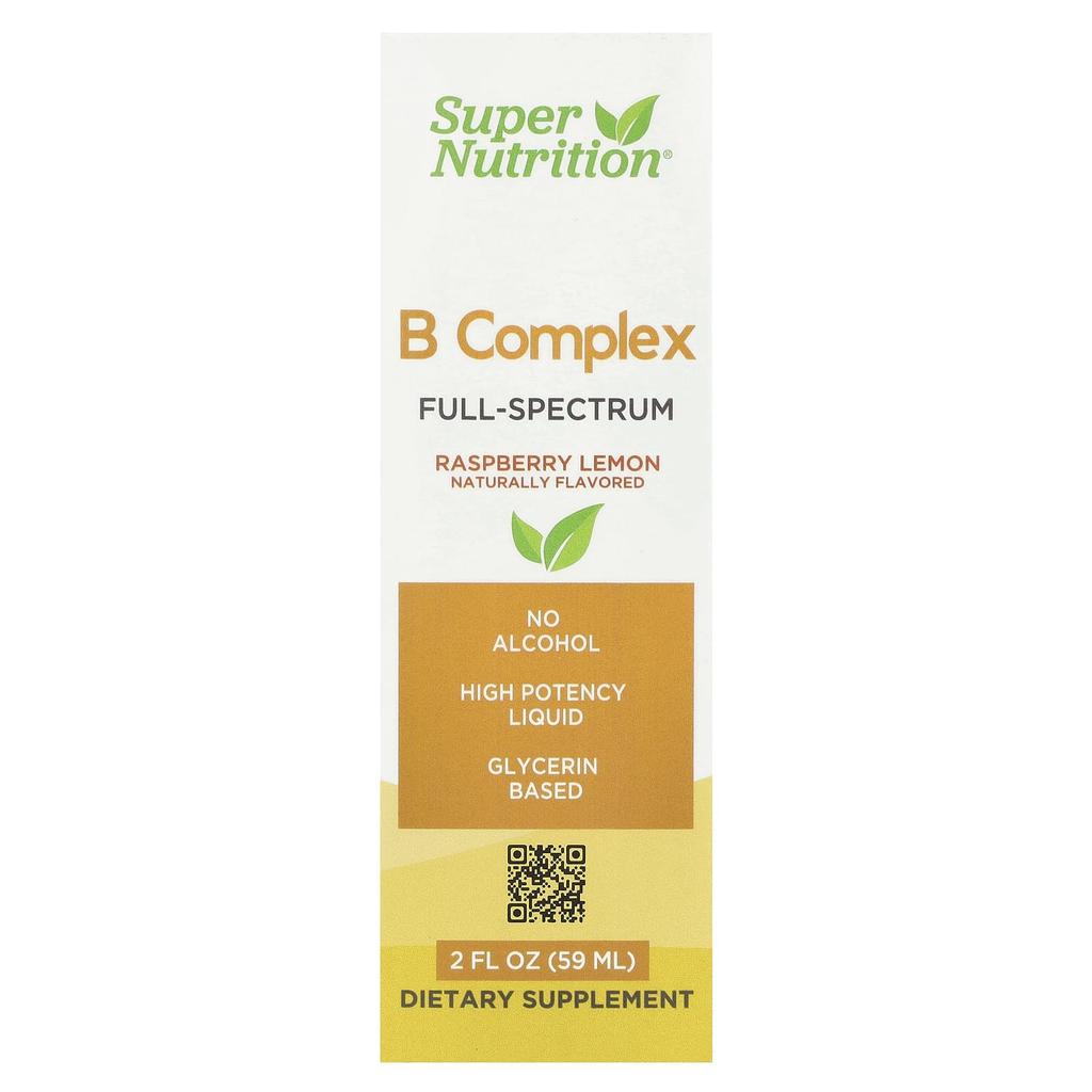 Super Nutrition, B-Komplex, Vollspektrum, Himbeer-Zitrone, 2 fl oz (59 ml)