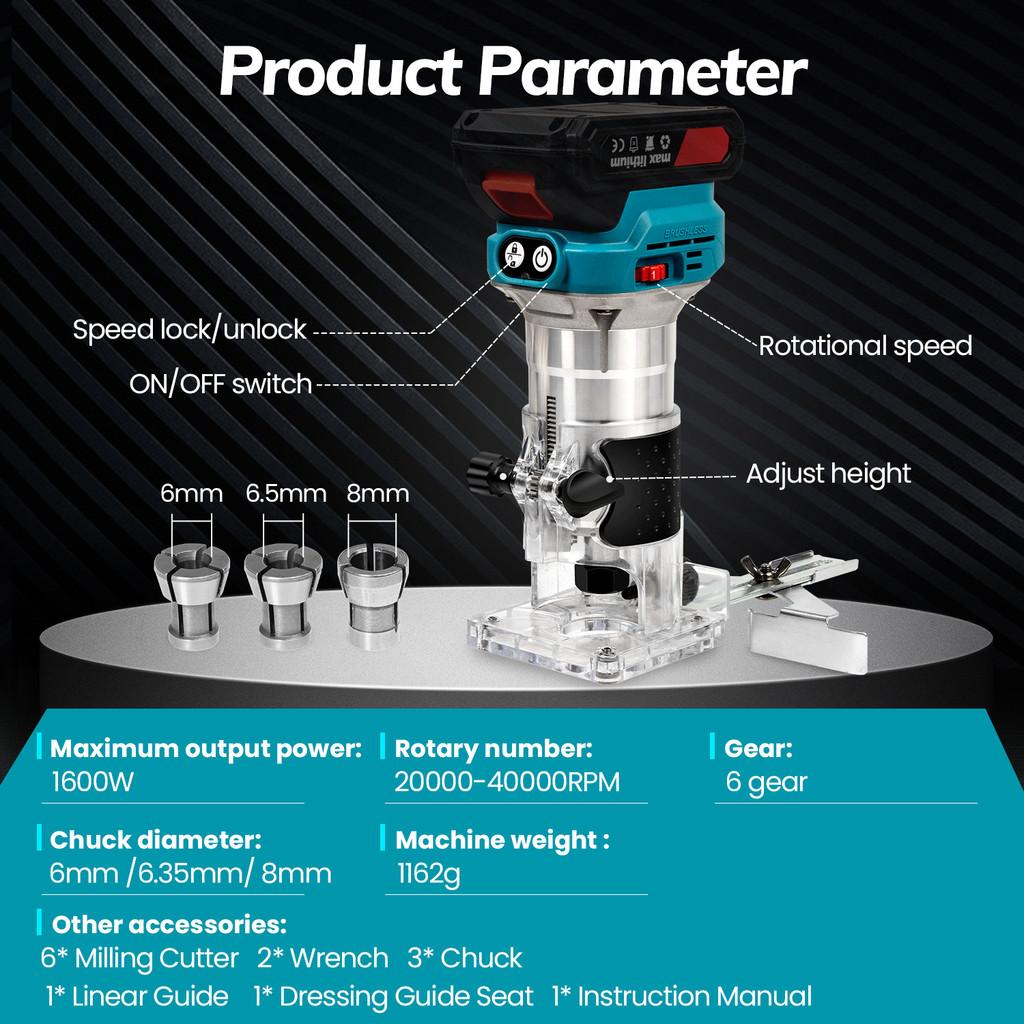 2-in-1 6 Geschwindigkeiten Mehrzweck Holzbearbeitung Gravur Fräser Akku-Holzfräse Bürstenloser Elektrischer Handtrimmer