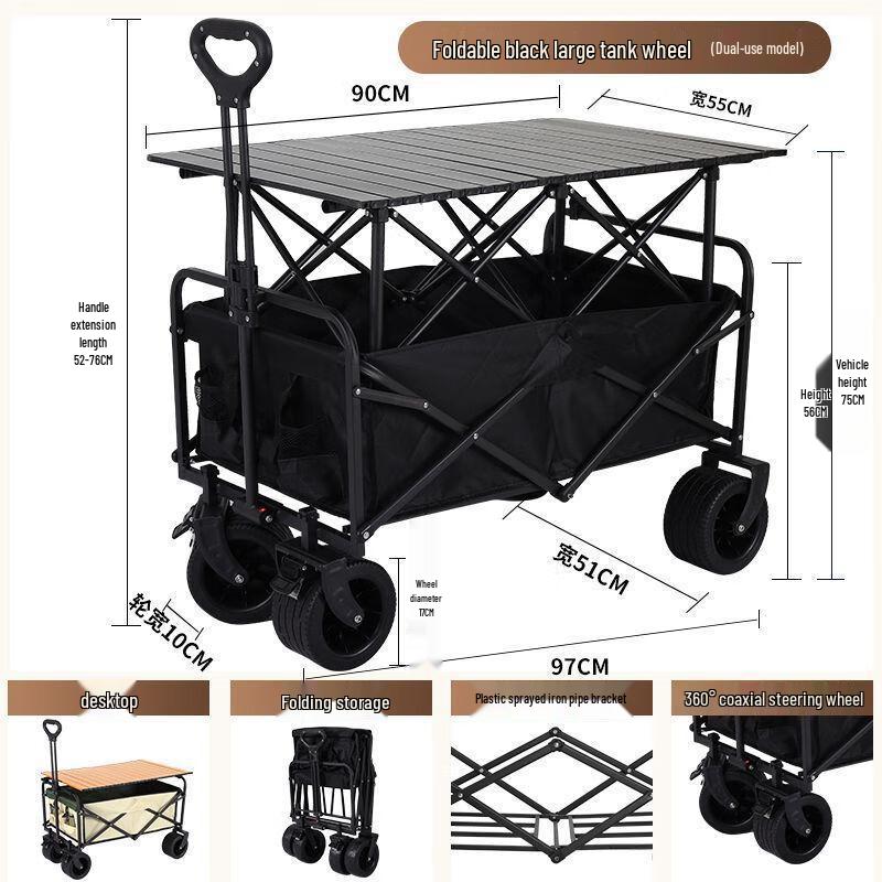 Foldable Outdoor Camping Picnic Cart with Dual-Use Table