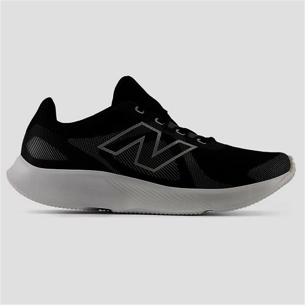 The New Balance ME430LK4 running shoe is designed for men, featuring a black color and a wide toe box (4E). It is styled as a sneaker, suitable for everyday running and sports activities, providing comfortable wear.