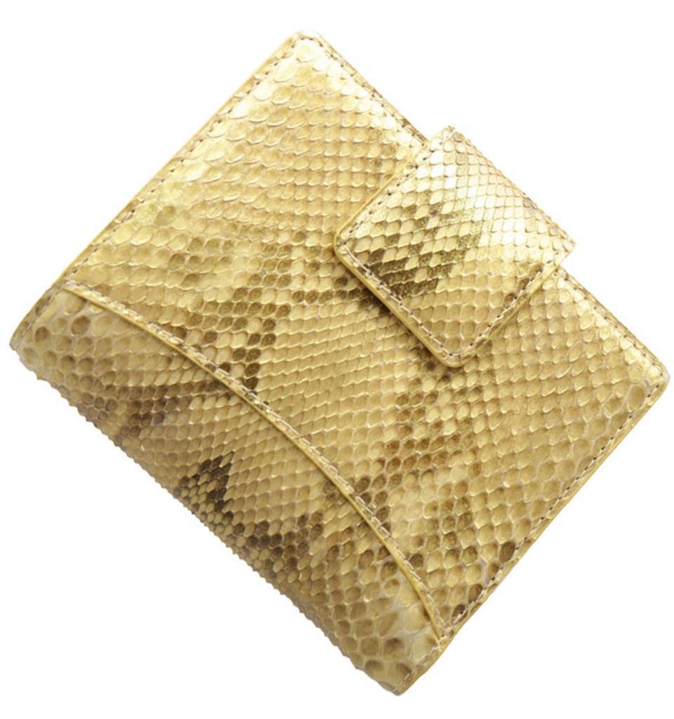 Sankyo Shokai Kompaktes Herren- und Damen-Bifold-Portemonnaie, Echtes Pythonleder, Gold