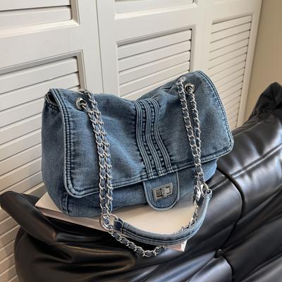 Modische Denim-Umhängetasche für Damen – trendige einfarbige Unterarmhandtasche und Geldbörse