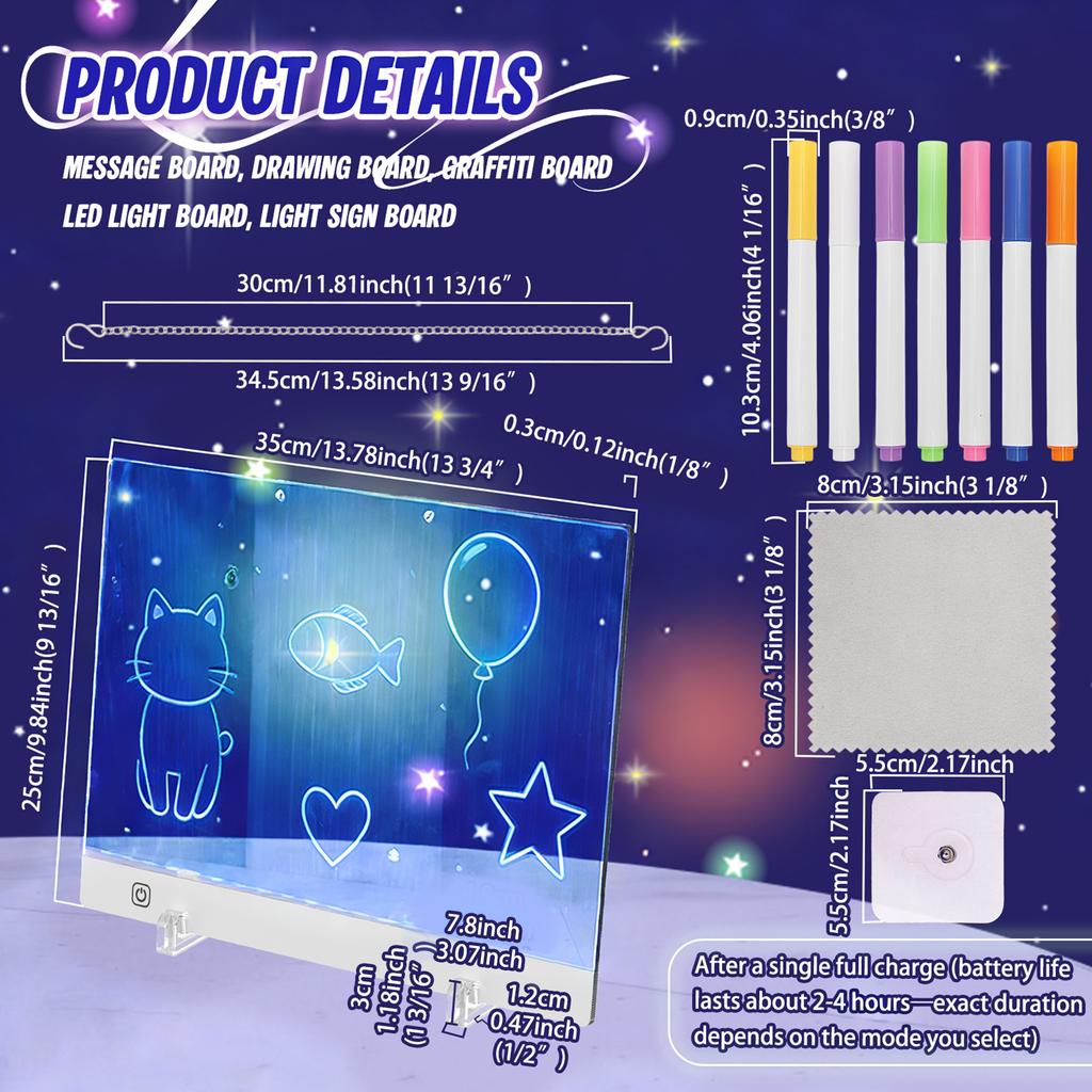 New LED Drawing Note Board Glowing Acrylic Message Board with 7 Marker and Stand 5 Mode Rechargeable Illuminated Drawing Pad