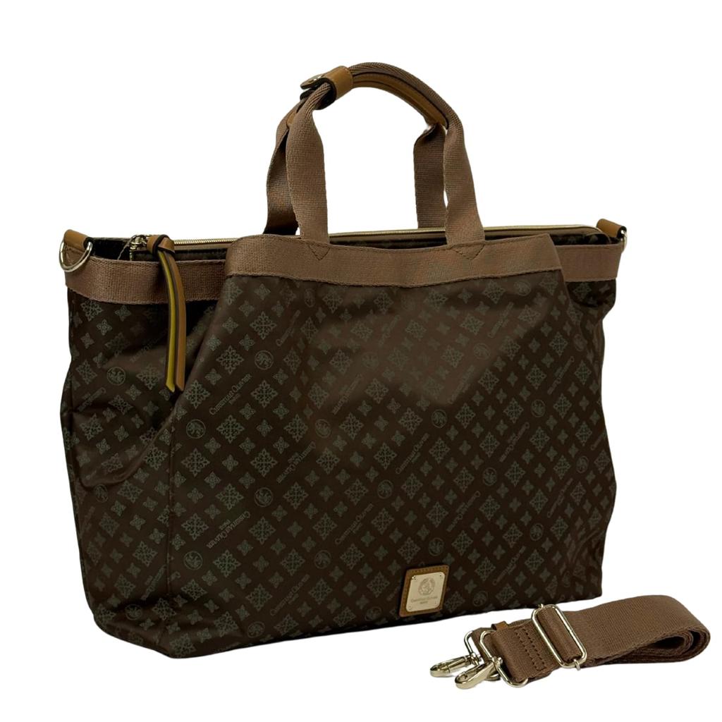 CHRISTIAN OLIVIER Große Tote Bag mit Schultergurt, 7629, Khaki, Monogramm Jacquard-Webart, Wasserabweisend, Leicht, Passt für DIN A4, 2-Wege, Ca.