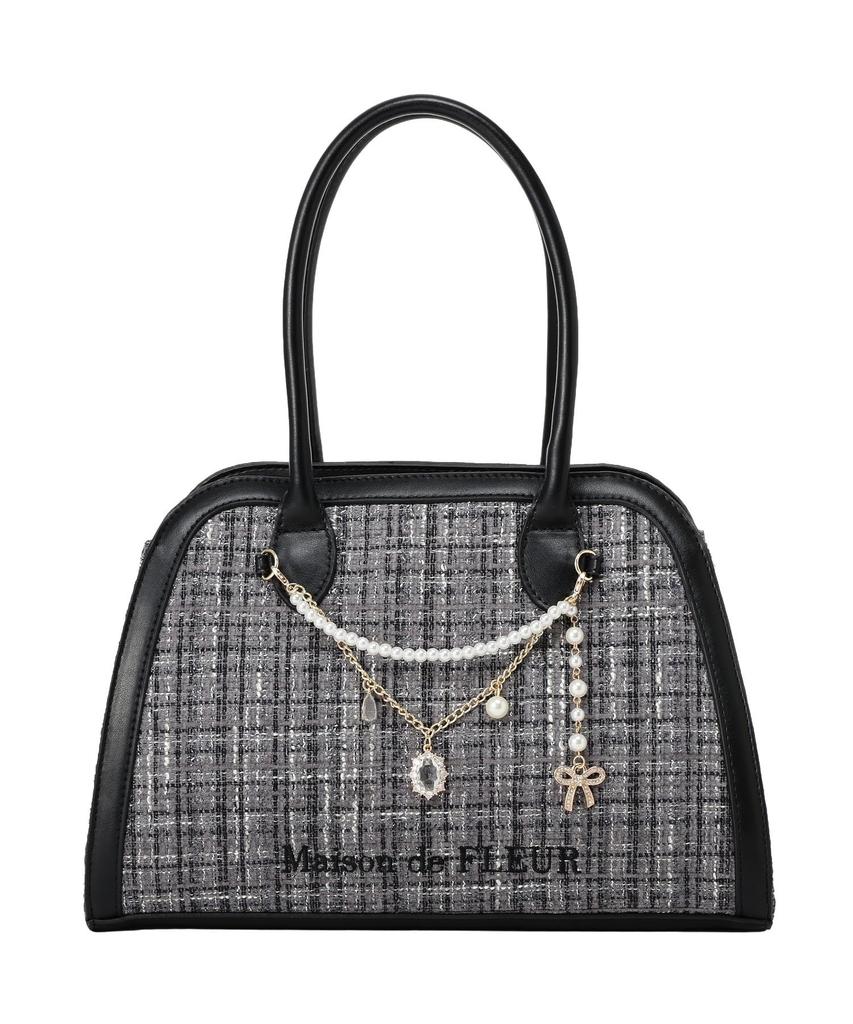 Maison de FLEUR Tweed 2-Wege-Tasche mit Anhänger, Schwarz, F Handtasche, 08001166300