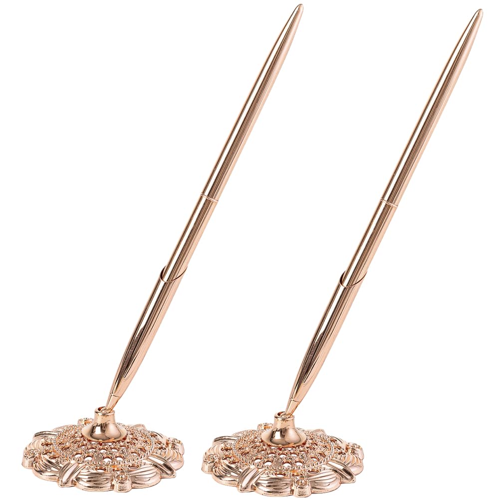 Ailunate Reception Desk Signature Pen with Ballpoint Pen for and Reception Rooms of Pink Pen, Pen, Stand, Weddings, Receptions, Hotels, (Pack 2, Gold)