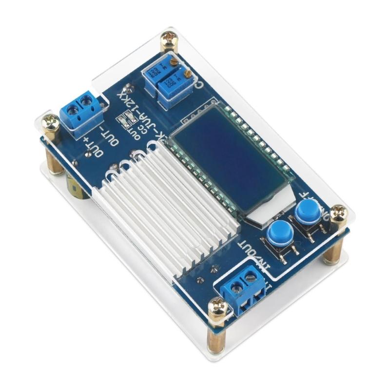 Featuring LCD display, this step down voltage regulator provides precise readings of voltages, current, and power, while its acrylic case and heatsink ensure protections and efficient heat dissipation.