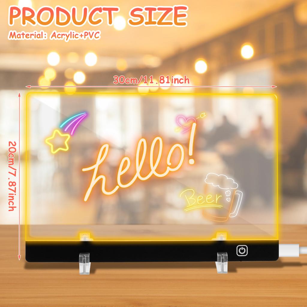 LED Note Board with Colors, Acrylic Dry Erase Board with LED Light, Include, Hanging Chain, Led Drawing Board for Kids Xmas Gift