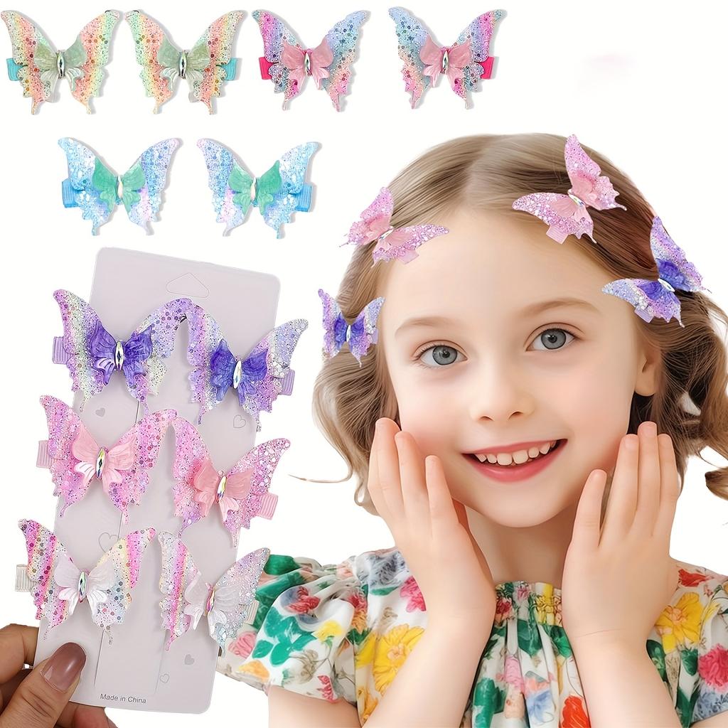 6Pcs Double Butterfly Hairpin Girls Cute Color Gradual Change Color Butterfly Edge Clip Duck Bill Clip Suitable for Daily