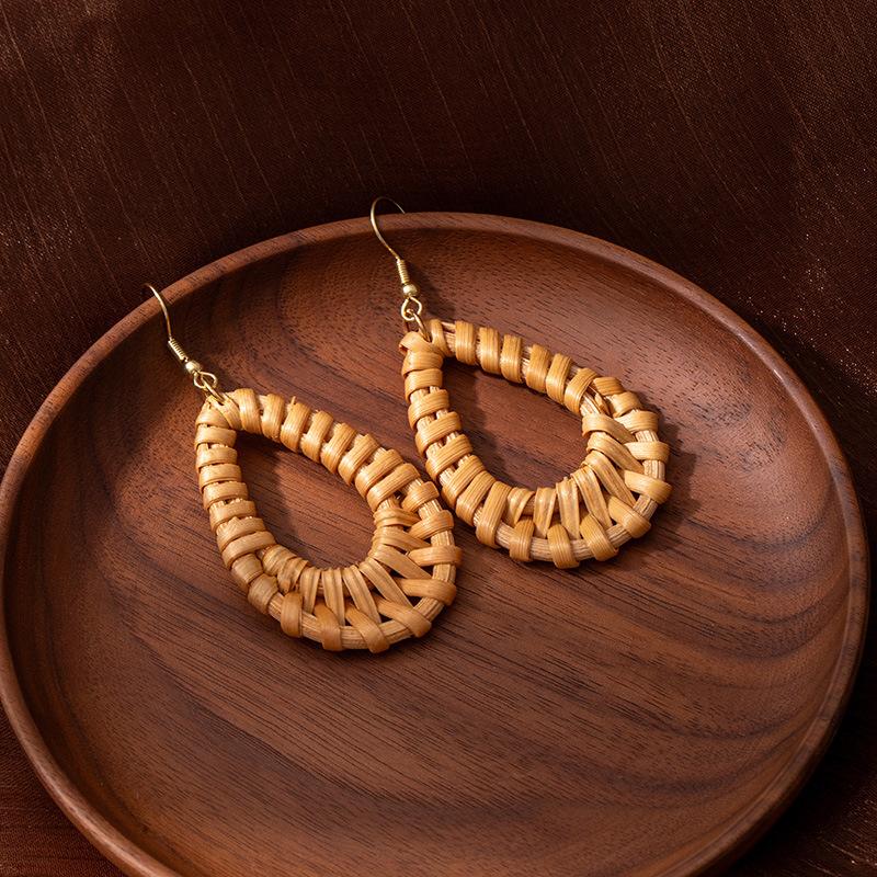 Bohemian Stil Bambus und Rattan Stroh Ohrringe Damen Nische Einzigartig Handgewebte Stecker Ohrringe Urlaubsstil Ohrringe Ohrschmuck