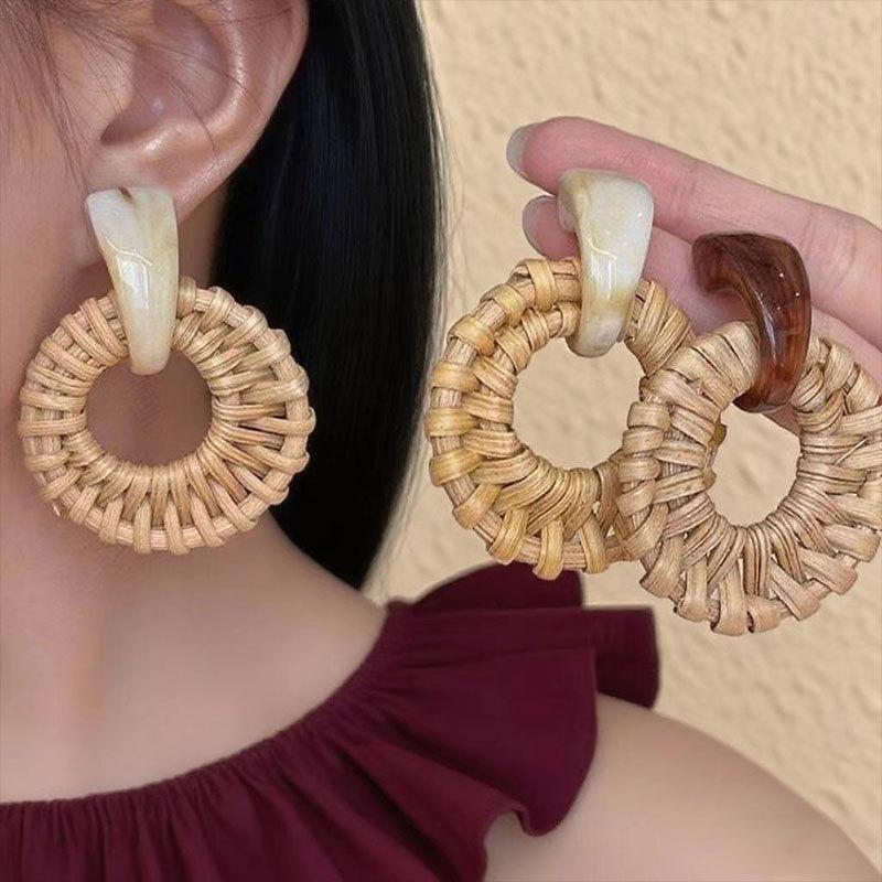 High-End Exaggerated Earrings Bohemian Long Woven Hollow Circle Studs Earrings Fashionable And Unique Temperament Earrings