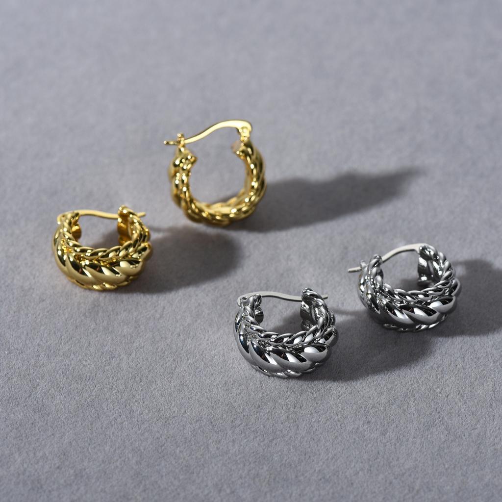 Premium Messingbeschichtet 18K Echtgold Ohrstecker Gedreht Gewebte Ohrringe Einfach Leichter Luxus Trend Retro Ohrringe