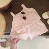 Verleihen Sie der Sommergarderobe Ihres Kindes einen Hauch von stilvollem Komfort mit unserem entzückenden koreanischen Sommer-Stricktanktop- und Shorts-Set für Mädchen.. Dieses zweiteilige Ensemble ist durchdacht für Mädchen im Alter von drei bis acht Jahren entworfen und macht es zur perfekten Wahl für die sonnigen Abenteuer Ihrer Kleinen.. Dieses mit größter Sorgfalt gefertigte Set besteht aus einem ärmellosen Tanktop und entzückenden Shorts, ideal, um Kinder bei warmem Wetter kühl und bequem zu halten.