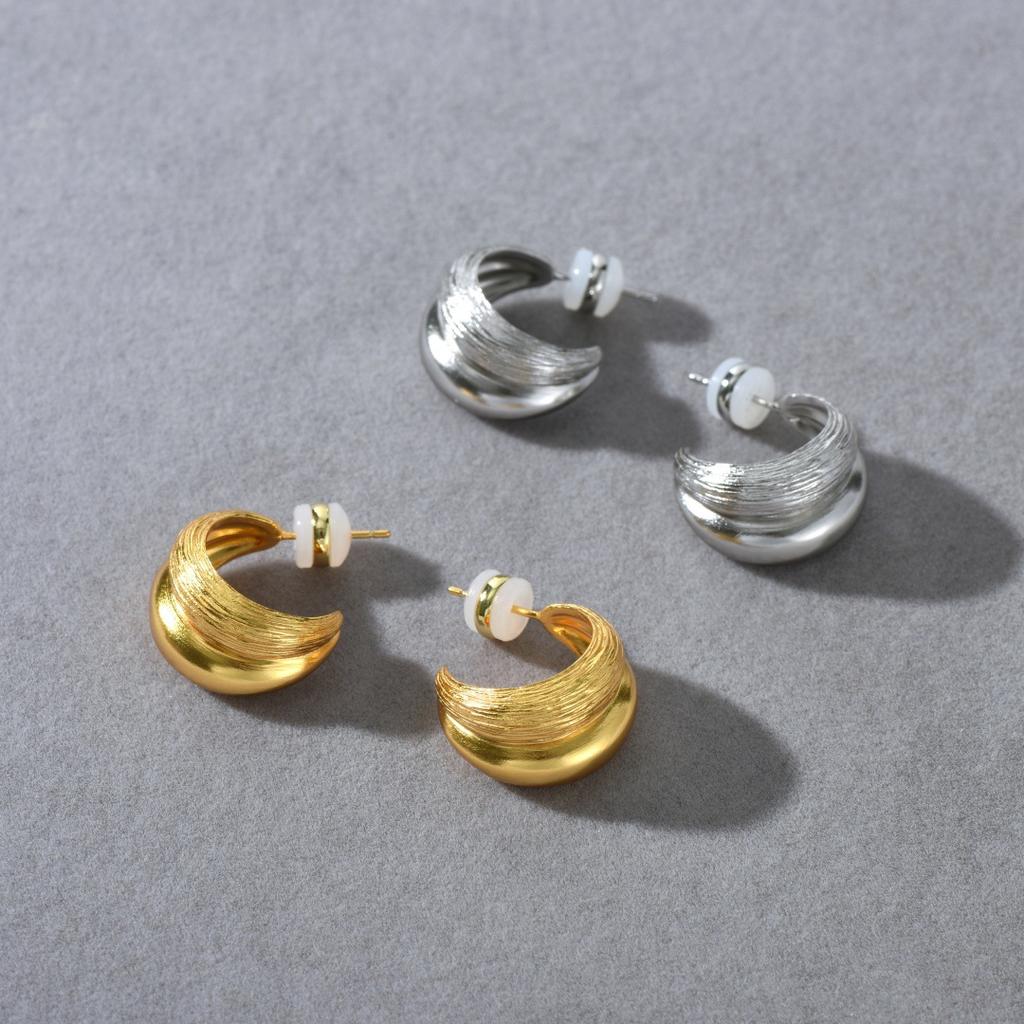 Modische C-Form Temperament 925 Silber Nadel Steckerohrringe Leichter Luxus Steckerohrringe Damen Nischen Design Gebürstete Plissierte Ohrringe