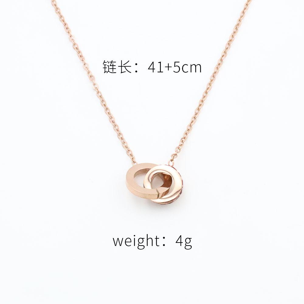 The Same Fashionable Double-Ring Zircon Pendant Necklace Accessories Versatile Niche Titanium Steel Non-Fading Jewelry Collarbone Chain
