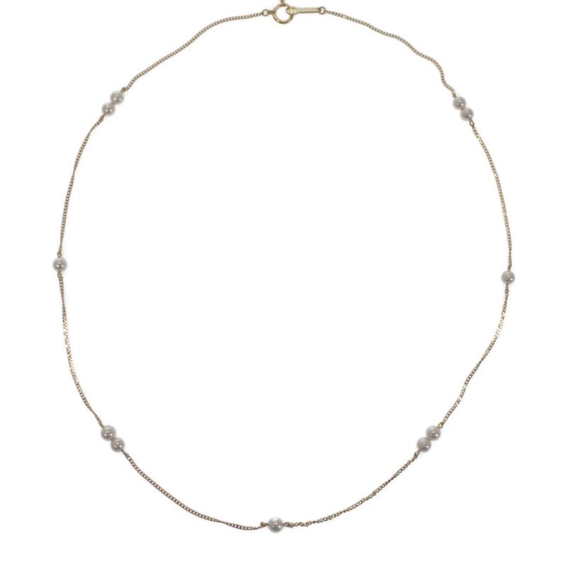 Production features:This sophisticated station necklace features lustrous baby pearls evenly spaced apart. The pearls are scattered throughout the chain, allowing you to enjoy their sparkle from any angle. The delicate chain, crafted from high-quality 18k yellow gold, adds a touch of elegance to the piece. It's perfect not only for yourself, but also as a gift for birthdays, anniversaries, and other special occasions.