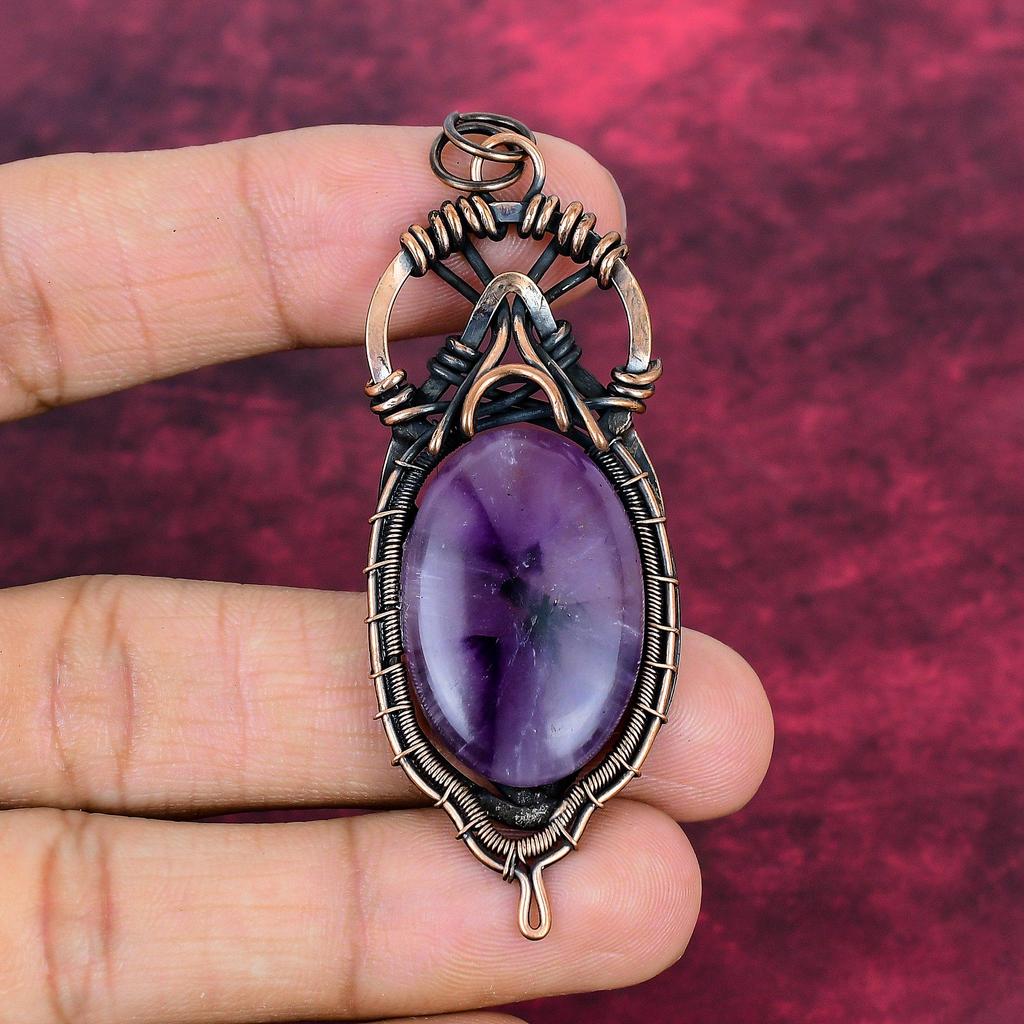 Star Amethyst Gemstone Pendant Copper Wire Wrapped Unique Jewelry Gifts For Wife