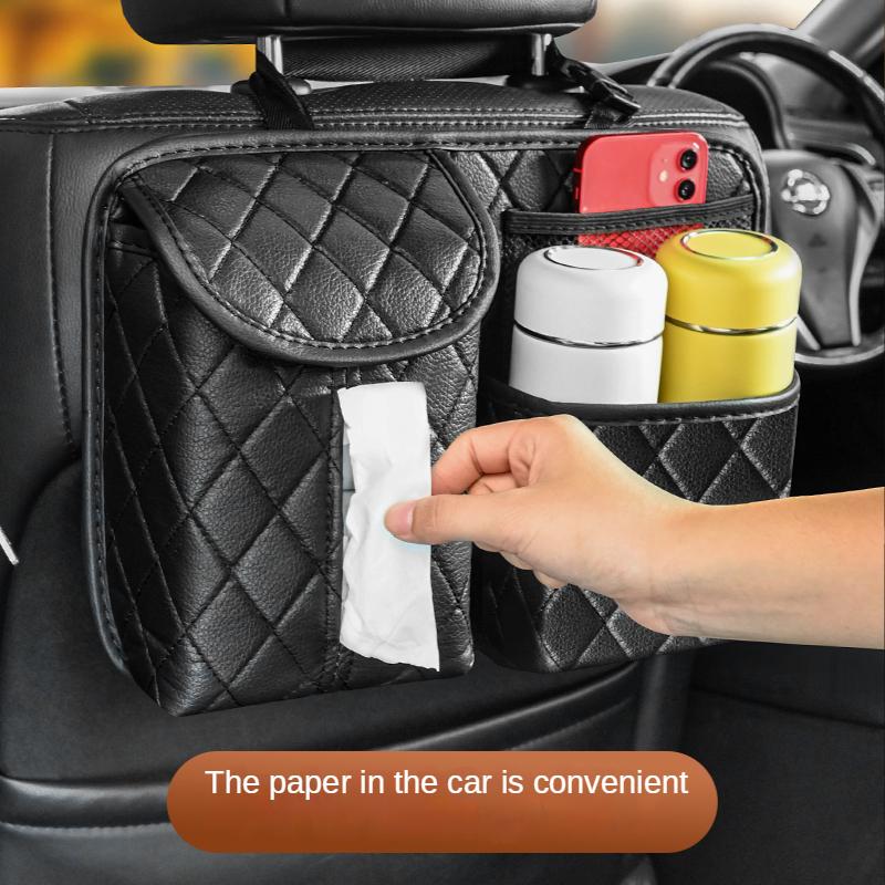 Car Back Seat Storage Bag Holder Universal Leather Auto Backseat Hanging Organizer Tissue Water Cup Towel Mobile Phone Pockets